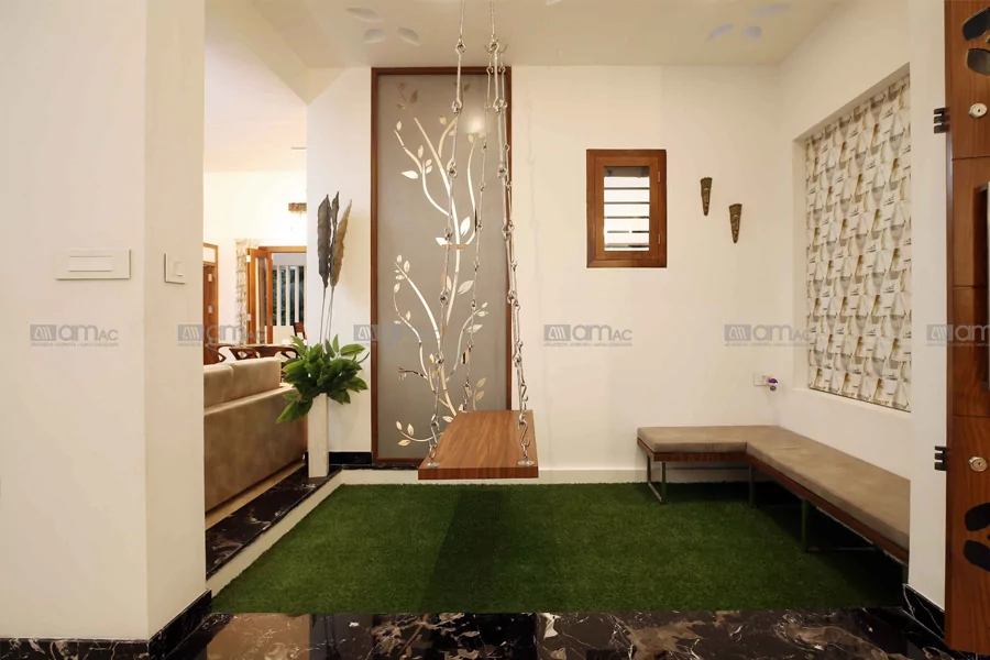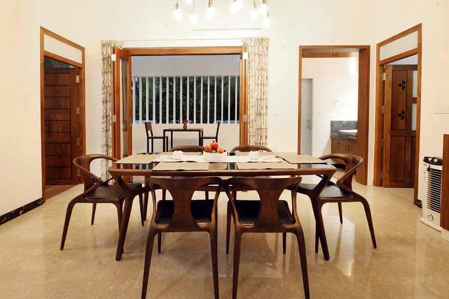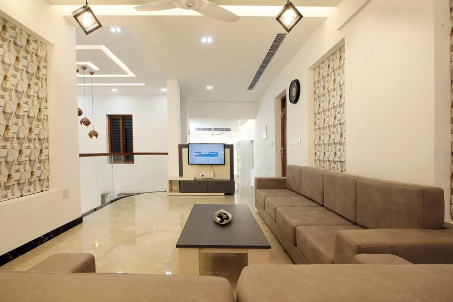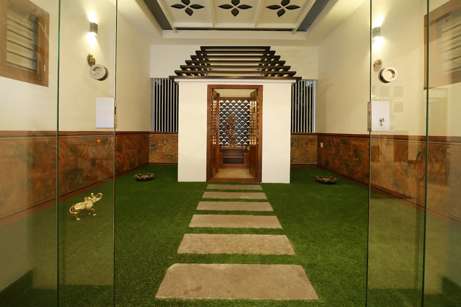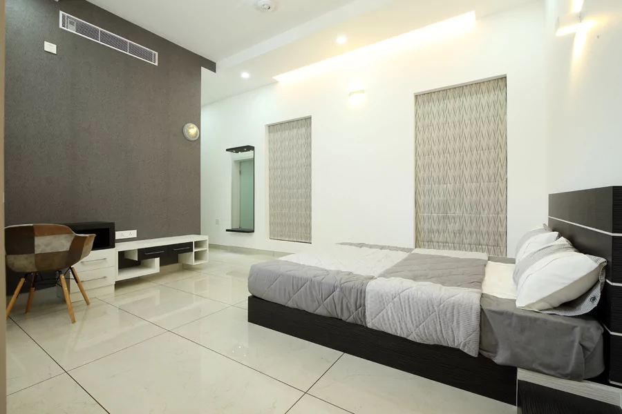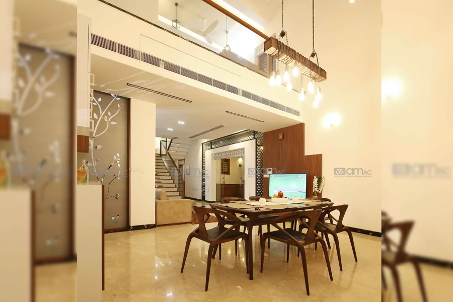 LIVING IS EASY IN THIS IMPRESSIVE, GENEROUSLY SPACIOUS RESIDENCE WITH PICTURESQUE LANDSCAPE VIEWS AROUND. LOCATED HALF A KILOMETRE AWAY FROM ARABIAN SEA, IDEALLY POSITIONED, LOOKING FAR INTO THE DISTANCE, THIS RESIDENTIAL BUILDING SHOWCASES ITS GRACEFUL FIGURE. IT HAS AN AFFINITY TOWARDS TRADITION STYLE COUPLED WITH CONTEMPORARY STYLING. A CLIMATE SENSITIVE DESIGN WITH A SLOPING ROOF POSITIONED TO COMBAT THE HEAVY MONSOONS. SEMI PERMEABLE SPACES SUCH AS COURTYARDS AND LARGE EXPANSES OF VERANDAH TAKE ADVANTAGE OF THE TROPICAL CLIMATE OF KERALA.