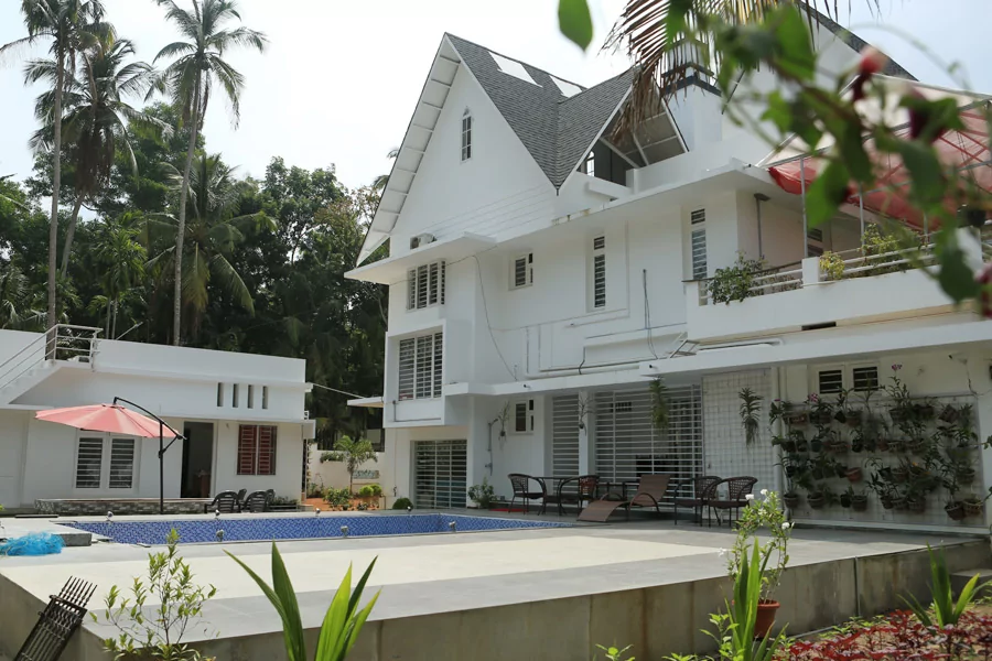 THE HOUSE IS CONCEPTUALISED TO BE IN COMPLETE HARMONY WITH ITS ABUNDANTLY GREEN SURROUNDINGS.THE BUIDING IS WELL LIGHTENED AND VENTILATED.