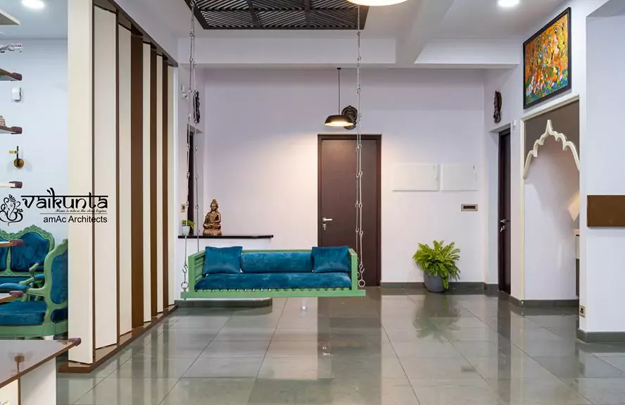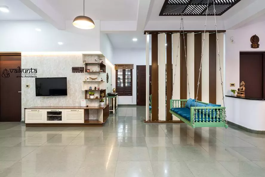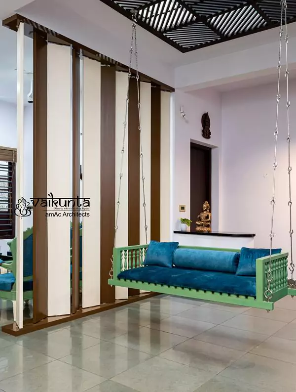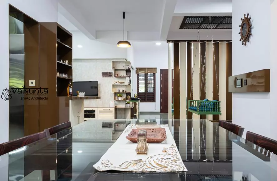 This Divine Vaikunta ,single -story abode designed by us for our friend couple is a blend of Traditional and contemporary ideas. Every part of the house is designed creatively, giving a pleasing colour tone. Every classical furniture piece and décor element included in the interior has enhanced the overall architecture, revealing the real beauty of the area.